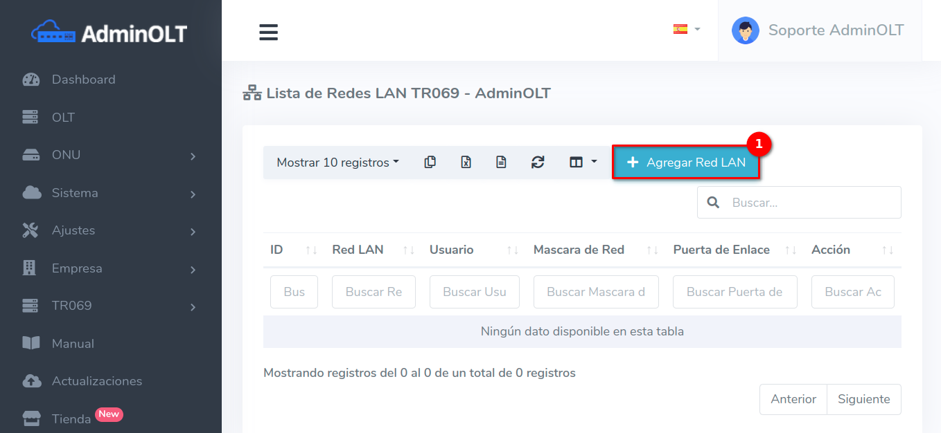 2Agregamos una RED LAN. Al dar click en el botón anterior, se mostrará una lista donde se muestran las redes creadas con anterioridad.