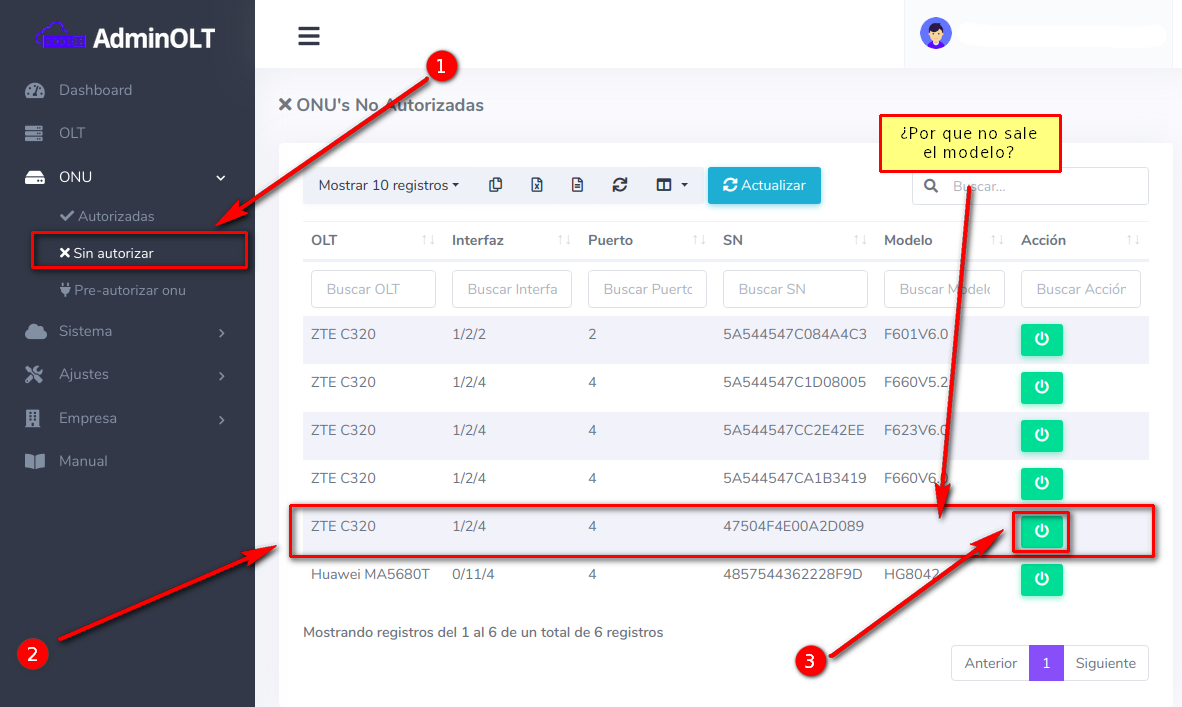 3 Autorizar ONU desde el sistema