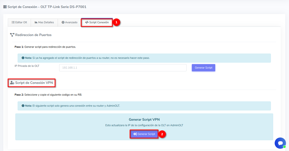 2 Nos dirigimos a la pestaña Script Conexión y en el apartado Script de Conexión VPN seleccionamos el botón con la leyenda Generar Script.