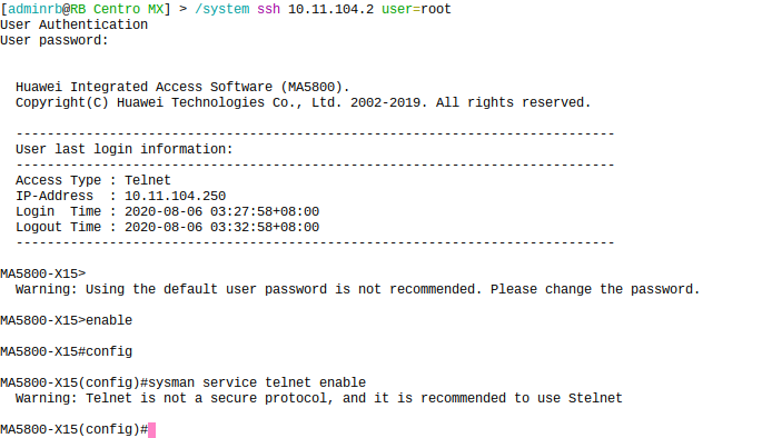 4 Habilitar el servicio Telnet, solo aplica para la serie MA5800
