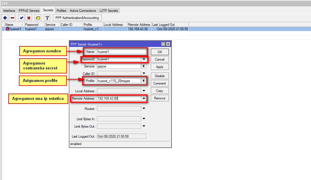De igual forma se necesita ya tener el servidor PPP junto con su usuario. En este ejemplo usaremos un servidor en un dispositivo MikroTik.