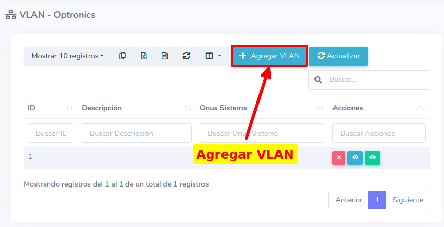 3 Desde esta vista podremos ver las VLAN's que hemos agregado, para agregar a la plataforma la VLAN que recién creamos debemos seleccionar la opción Agregar VLAN.