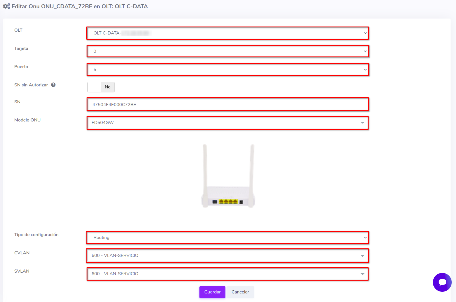 - Editar ONU en AdminOLT desde Lista de ONU's Autorizadas