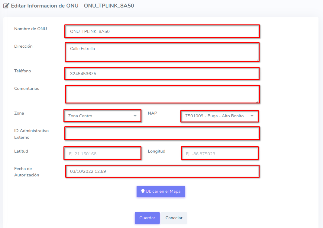 - Editar ONU en AdminOLT desde Lista de ONU's Autorizadas