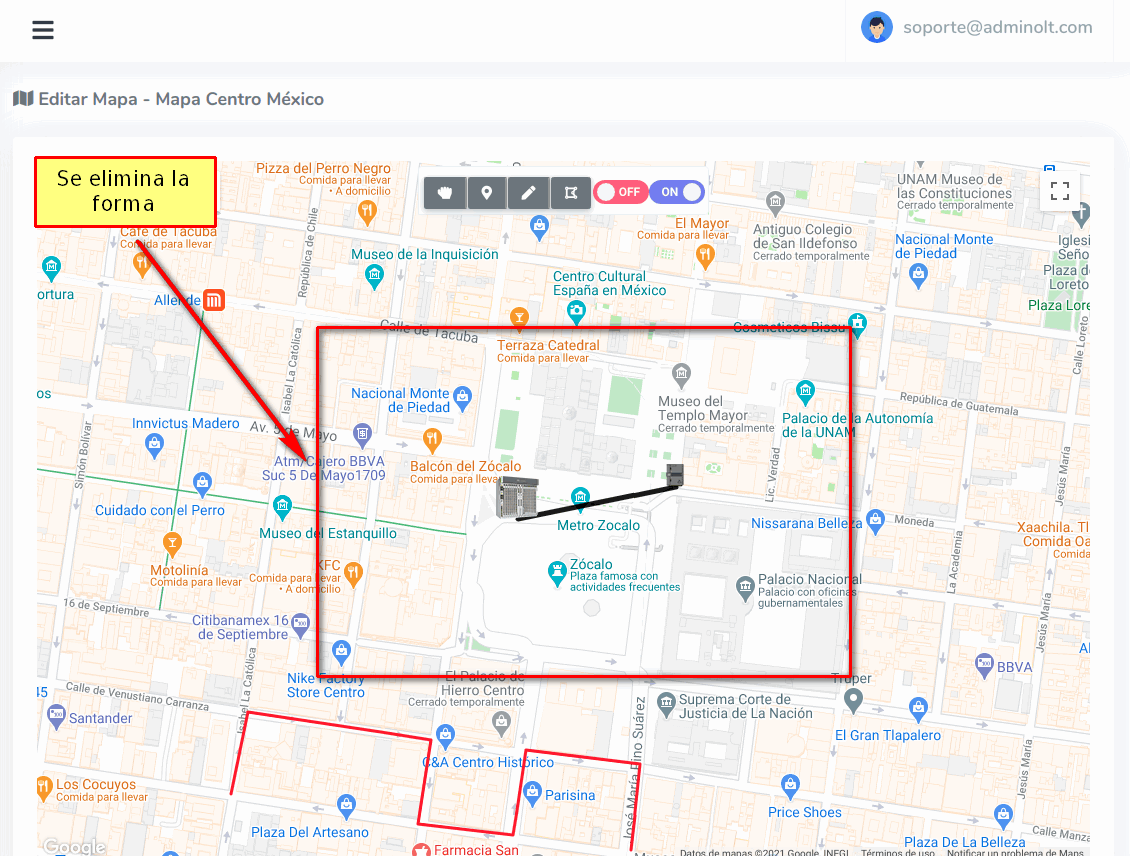 Una vez haya dibujado la Geozona que desea, para terminar de dibujar debemos dar click en la opción de Manipular Mapa.