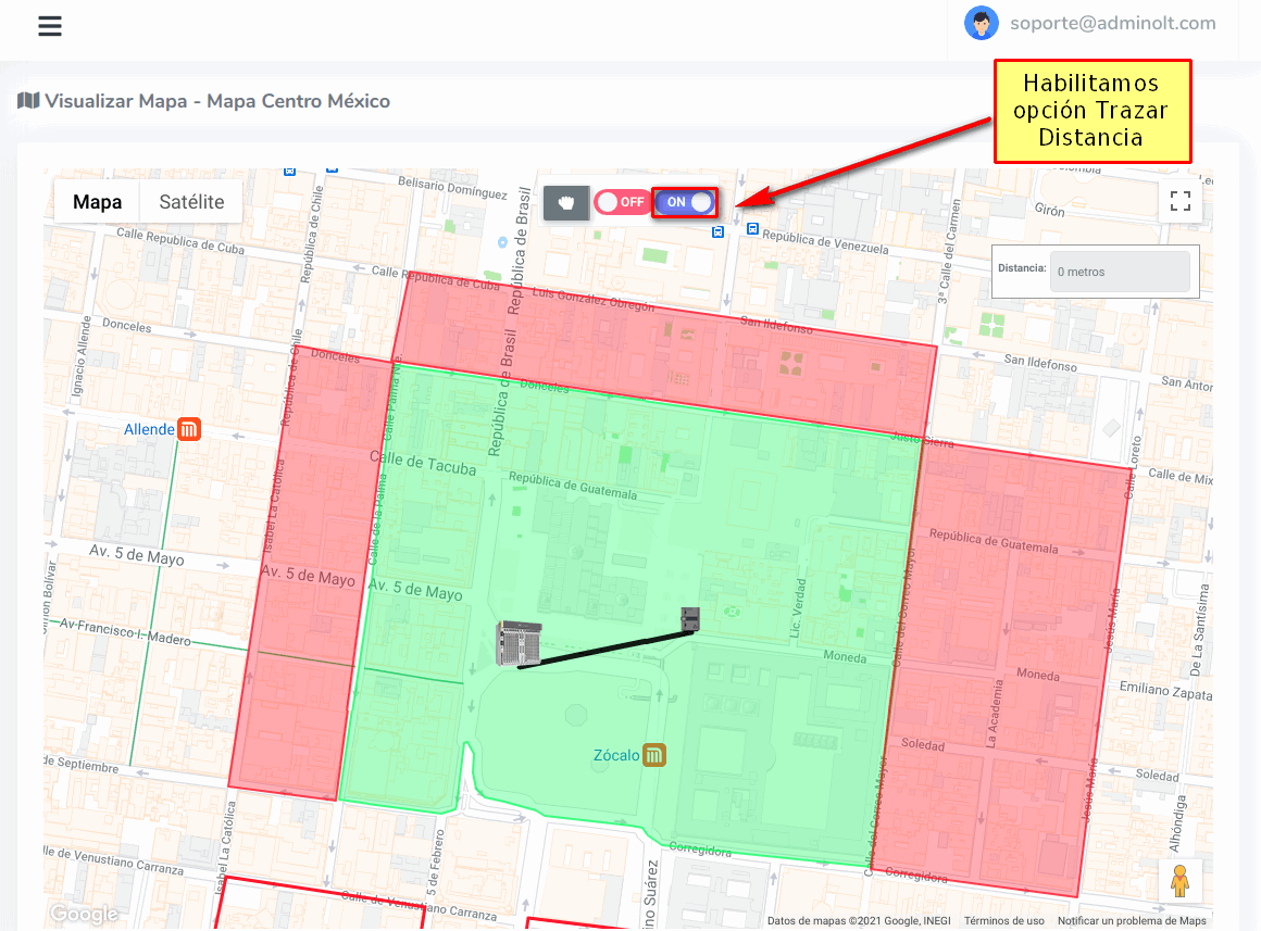 2 Habilitar opción Trazar Distancia.